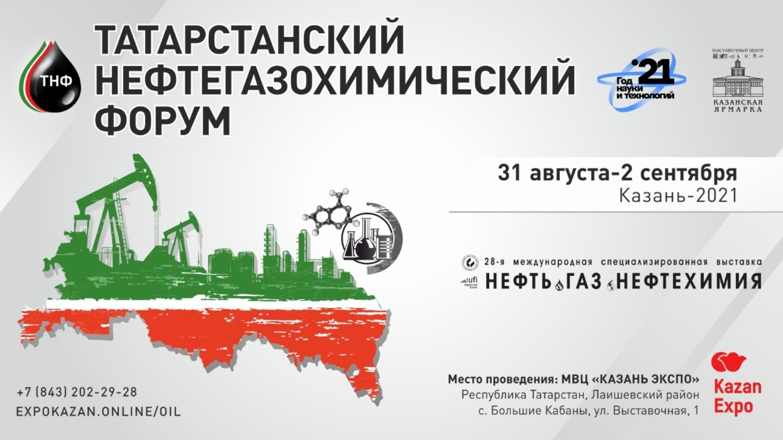 В Казани с 31 августа по 02 сентября 2021 года в Международном выставочном центре «Казань Экспо» состоится Татарстанский нефтегазохимический форум. В этом году одно из крупнейших международных мероприятий нефтегазовой отрасли России будет посвящено Году науки и технологий.