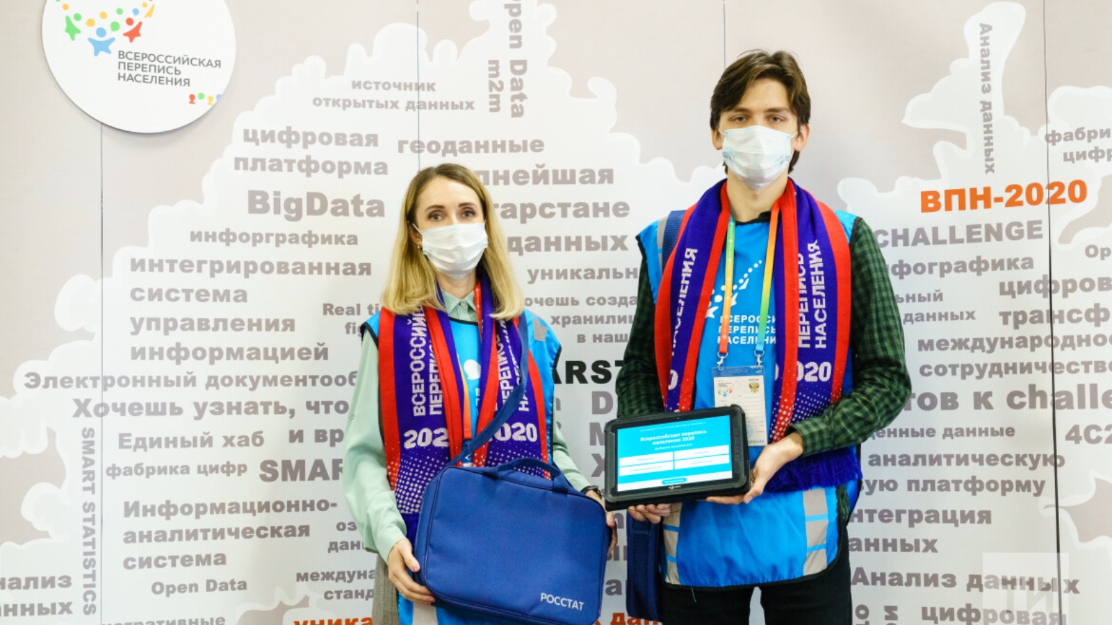 Удостоверение, подписанное руководителем Росстата, паспорт, фирменные шарф, жилет, сумка с символикой переписи и планшетный компьютер.